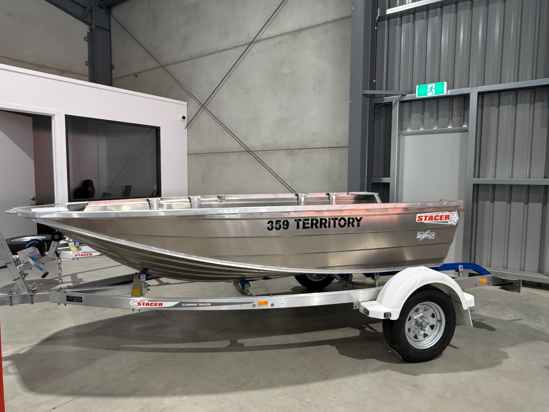 Stacer 359 Territory Aluminium Boat – Simple, Tough & Built to Fish The Stacer 359 Territory is a compact and dependable aluminium boat designed for anglers who want a no-nonsense, easy-to-own fishing platform. Supplied in a clean, unpainted aluminium finish, this boat is all about durability, practicality, and low maintenance—perfect for rivers, creeks, dams, and estuaries. With its lightweight hull and proven Territory design, the 359 offers excellent stability and easy handling both on and off the water. The open layout provides generous internal space for its size, making it ideal for casting, bait fishing, or setting pots, while remaining simple to launch and retrieve. Key features include: Tough, unpainted aluminium hull for durability and easy care Wide, stable beam for confident fishing Open interior layout with excellent usable space Lightweight design for easy towing and launching Whether you’re a first-time boat owner or an experienced angler looking for a reliable runabout, the Stacer 359 Territory delivers proven performance, rugged construction, and great value—ready to fish whenever you are.